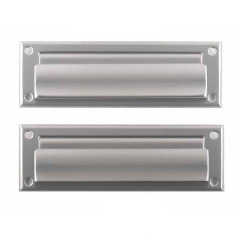 Solid brass. Spring loaded front flap, gravity covered back flap. Packed with wood screws.