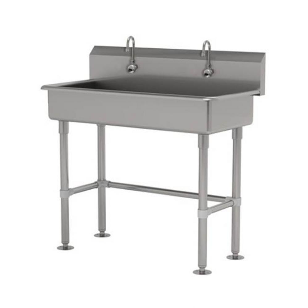Multiwash Hand Sink, splash mount faucet provision, with stainless steel legs and flanged feet, with (2) electronic faucets, 40''W x 19-1/2''D x 42-1/2''H (overall), 16'' front-to-back x 5'' deep (bowl size), 8-1/2