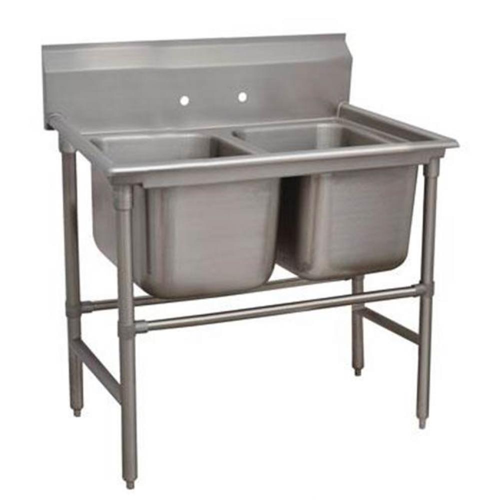Regaline Sink, 2-compartment, 24'' front-to-back x 18'' wide sink compartments, 14'' deep, with 11'' high splash, stainless steel legs with welded front-to-rear and adjustable left-to-right cross rails, 1'' adjustabl