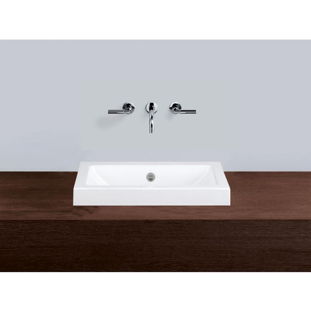 Sit-on basin, rectangular, 23 x 13 5/8'', height 2 3/8'', glazed, without faucet hole, with overflow, including installation kit and overflow set