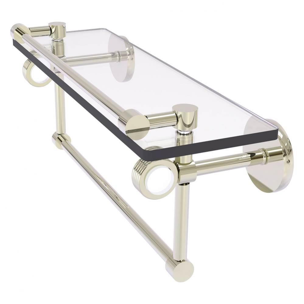 Clearview Collection 16 Inch Glass Gallery Shelf with Towel Bar and Grooved Accents - Polished Nic
