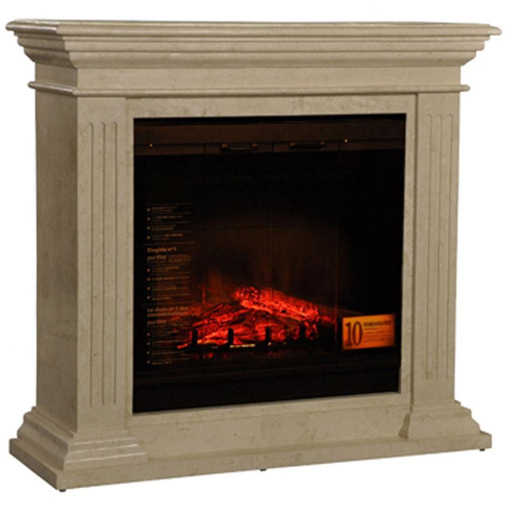 Crafted from fossil stone, this electric fireplace boasts fluted columns. The firebox is 32'with bi-fold glass doors and includes a multi-function remote control.