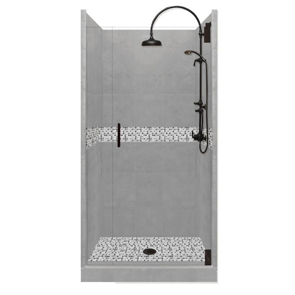 54 x 36 x 80 Del Mar Luxe Alcove Shower Kit in Wet Cement with Black Pipe Finish (ALH-5436WD-CD-BP) by American Bath Factory