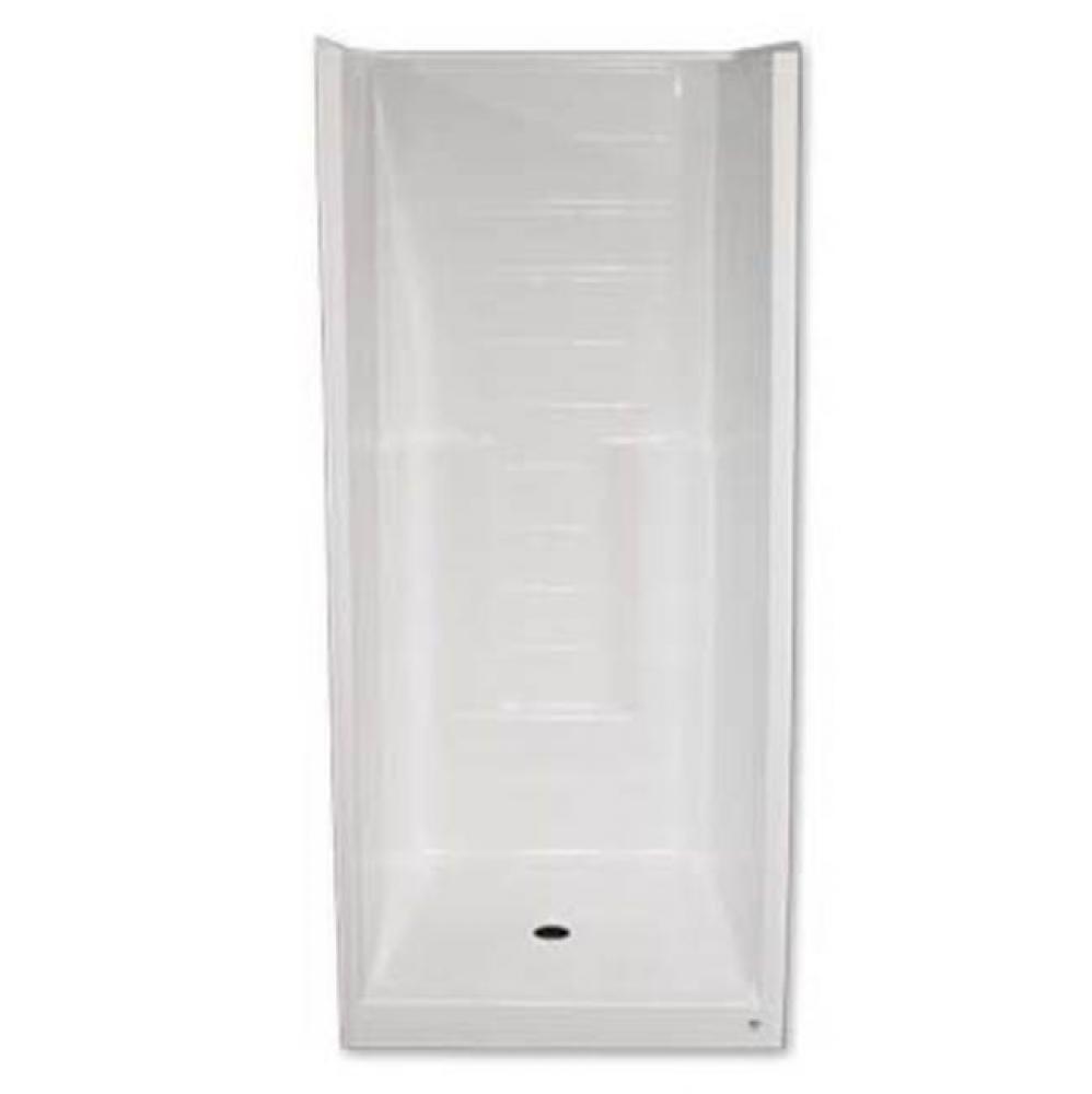AcrylX shower with molded soap ledges, simulated 6'' tile with diamond accent strip.