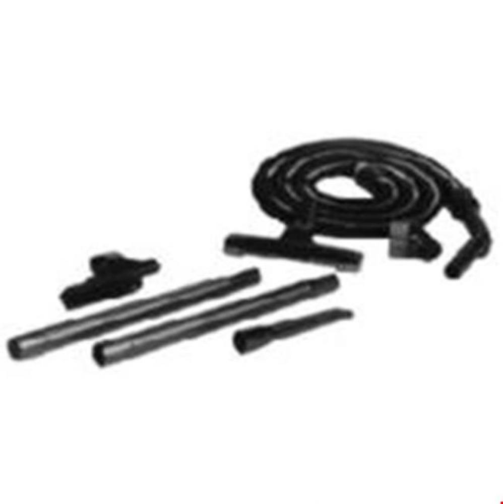 Compact 8 hose stretches to 32 with 360 full-swivel handle, 9 floor brush, round dusting brush, upholstery nozzle with slide-on brush, and crevice tool.