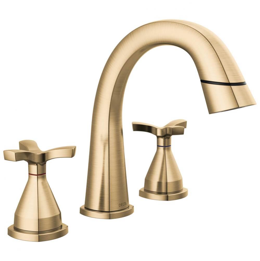 With subtly upturned spout and helo spoke handles, the Stryke™ Bath Collection radiates confidence and composure with an assured stature and ascending contours. The pull-down spray wand features Delta® MagnaTite Docking which uses a powerful integrated magnet to pull your faucet spray wand precisely into place and hold it there so it stays docked when not in use. The Worry-Free Drain Catch is a simple solution to the common problem of pills, jewelry or other valuables washing down the drain. Delta® Lumicoat™ Finishes are guaranteed to resist water spots and mineral buildup and easily wipe clean without chemicals or cleaners. Delta® faucets with Diamond Seal® Technology perform like new for life with a patented design that reduces leak points, is less hassle to install and lasts twice as long as the industry standard. Delta WaterSense® labeled faucets use at least 20% less water than the industry standard — helping you save water without compromising performance. You can install with confidence, knowing that Delta faucets are backed by our Lifetime Limited Warranty.