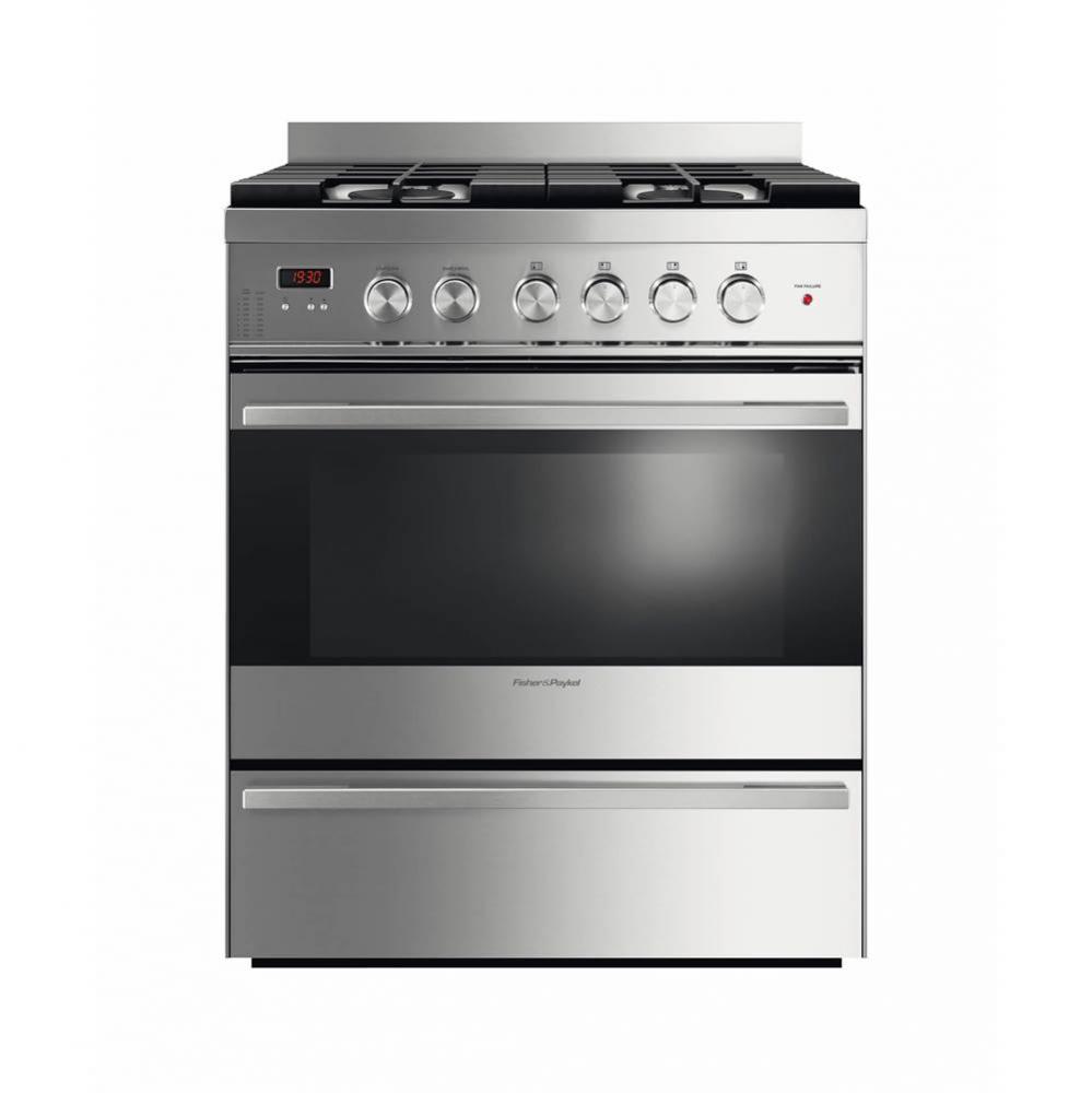 This Fisher Paykel 30 freestanding gas range gives you the flexibility to prepare several courses simultaneously with a large oven and four burner gas hob.