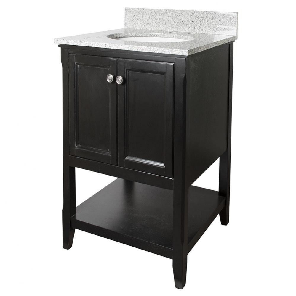Classic and clean, the 24 in. Auguste Collection vanity is sure to become the focal point for any bathroom. Optimal for a small bathroom, this vanity offers style and functionality with a convenient open shelf and ample cabinet space behind two stylish framed doors. Finished in black with tapered legs and distressed pewter knobs, this Auguste Collection vanity blends modern elements with traditional influences to perfectly complement any bathroom.
