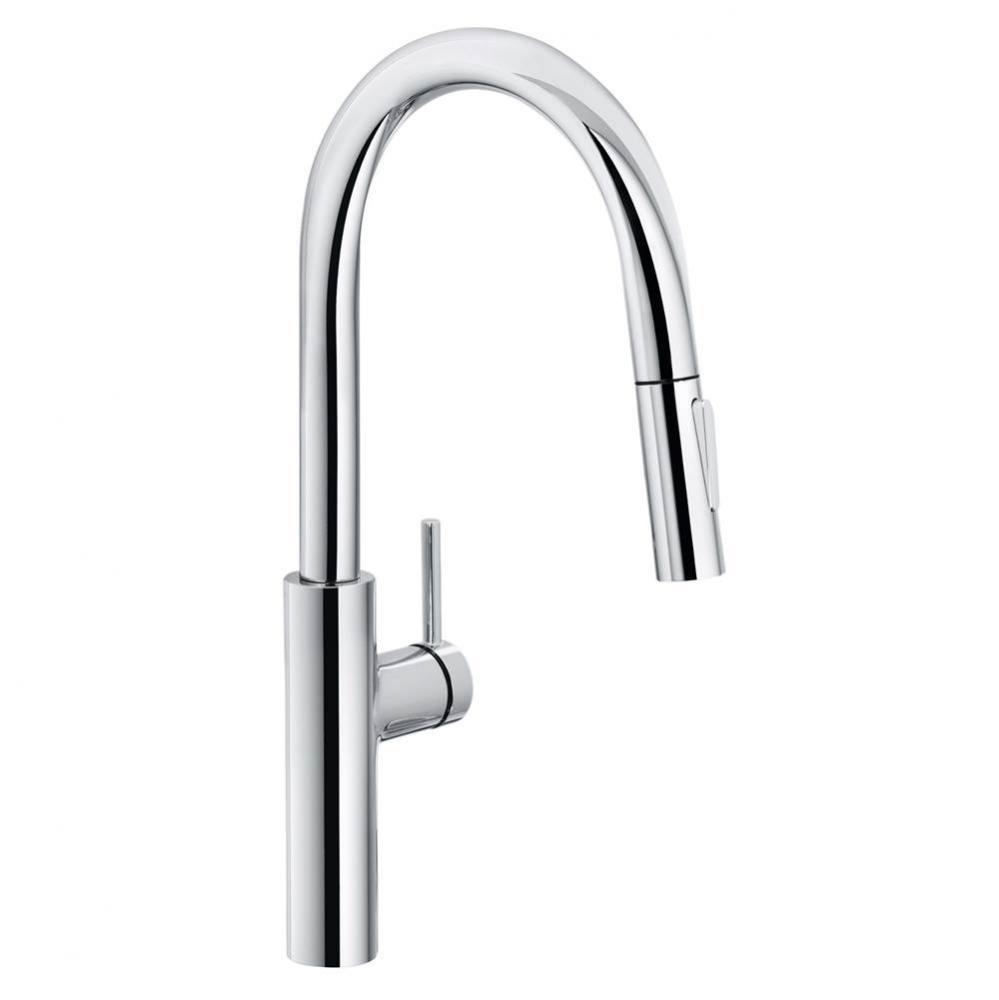 This Franke Pescara pull-down kitchen faucet offers a variety of features to make your daily kitchen tasks more manageable. The pull-down spout provides a wide range of motion, so you can easily reach any area of your sink. The dual-functioning spray head lets you toggle between a powerful spray for removing food and a gentle stream for rinsing produce. The tall arched design offers exceptional space for cleaning or filling large pots and pans. With its superior quality and stylish design, a Pescara faucet is an excellent upgrade for any kitchen.