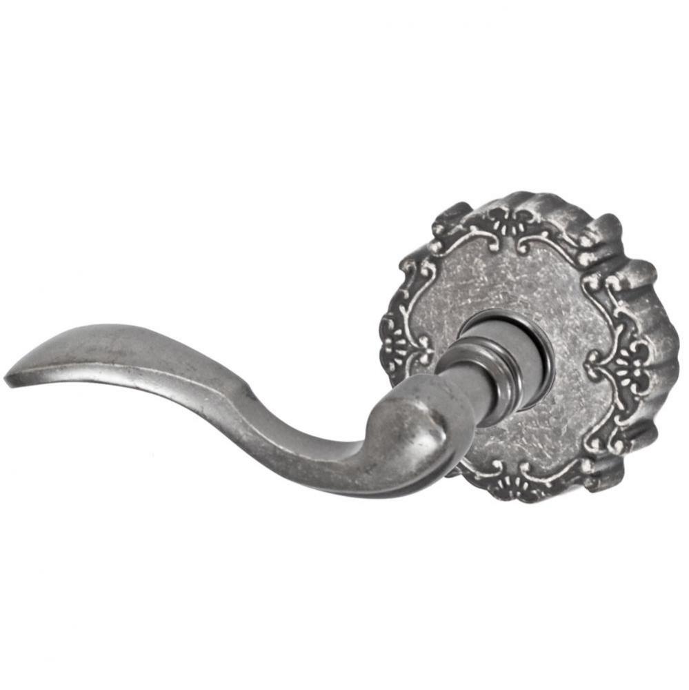 Paddle Lever with Round Victorian Rose Privacy Set in Antique Pewter - Left