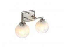 Transform your space with Glam elegance using the Yep by Golden Lighting Elliott 2-light Vanity in Pewter and Clear Alabaster Glass. Featuring a glass shade, it creates a welcoming atmosphere. Each Clear Alabaster glass shade is spherical with a smooth surface, infused with milky-white swirls that offer an ethereal light effect, enhancing any bathroom's allure. The soft and classic pewter finish is achieved through a durable electroplating process, providing a timeless appeal with a satin luster that diffuses light beautifully. Suitable for damp locations, this fixture works perfectly in bathrooms and covered areas where occasional moisture is present. The overall dimensions are 15.25"W x 8.75"H x 7"D, requiring 2 E26 Medium base bulbs, up to 60 watts each. Elevate your bathroom's ambiance with this exquisite lighting solution, designed for quality and sophistication.