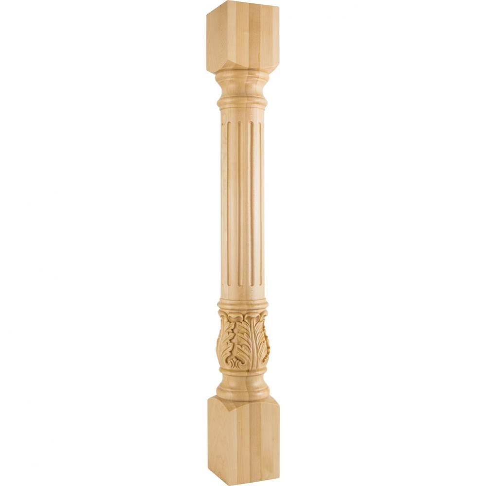 5'' W x 5'' D x 42'' H Rubberwood Fluted Acanthus Post (P23-5-42-RW) by Hardware Resources