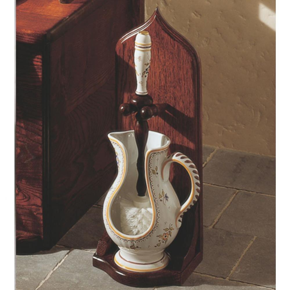 Wooden Toilet Brush with Ceramic Handle in White (130420)