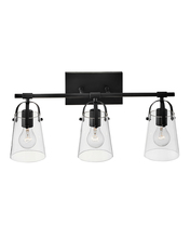 Clean and airy, Foster breathes composed simplicity into any bath space. Softly tapered glass shades suspended from arched handle prongs create a sophisticated transitional silhouette, enhanced by practical yet stylized details.