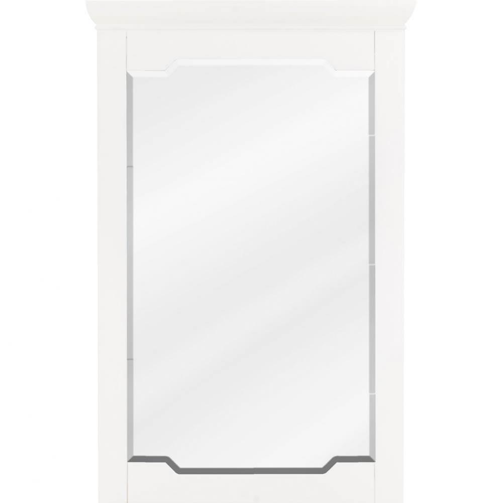 A geometric frame around the beveled glass gives this White Chatham mirror a unique look. It can transform a room with its contoured top and subtly carved details. This mirror works perfectly with small vanities. Coordinates well with transitional style va