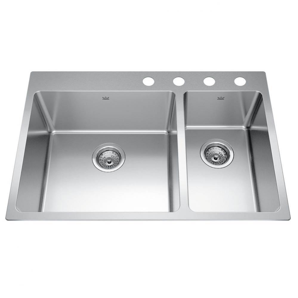 Brookmore 31-in LR x 20.9-in FB Drop in Double Bowl Stainless Steel Kitchen Sink (BCL2131R-9-4) by Kindred Canada