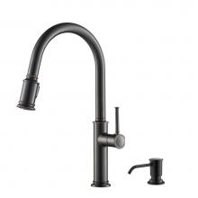 Sellette™ Traditional Single Handle Pull-Down Kitchen Faucet with Soap Dispenser and Deck Plate