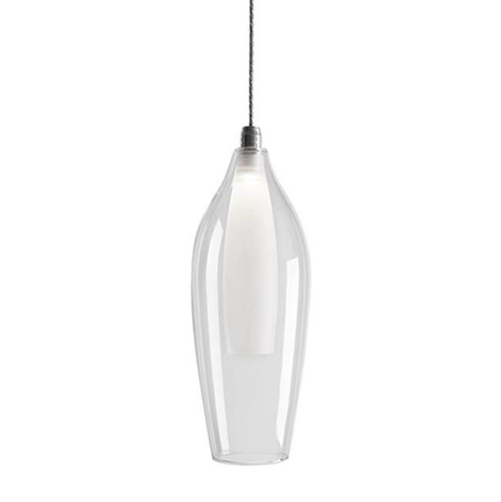 Simplistic elegant single LED pendant with a slender drop clear outer glass and frosted inner glass set together as one piece. New patent pending socket design and Kuzco SSL wire allow this fixture to be 120V AC LED, 2W, fully dimmable. Metal details in ch