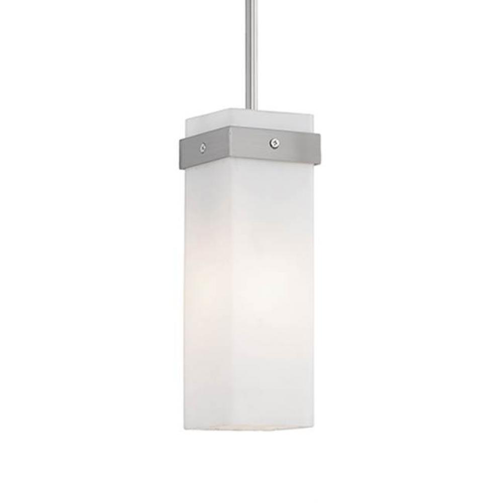 Single Lamp Pendant With White Square Opal Glass. Brushed Nickel Metal