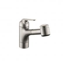 Domo Single-Hole Kitchen Faucet With Pull-Out Spray - Top Lever - Brushed Stainless Steel