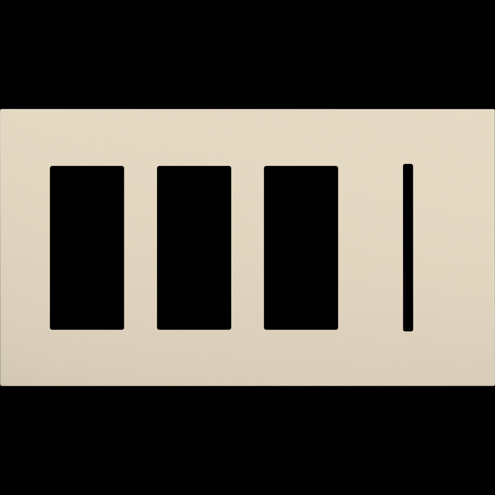 Multigang WallPlate for New Architectural Controls and Accessories, Four-gang for 3 accessories or Palladiom keypads and 1 Grafik T control in light almond