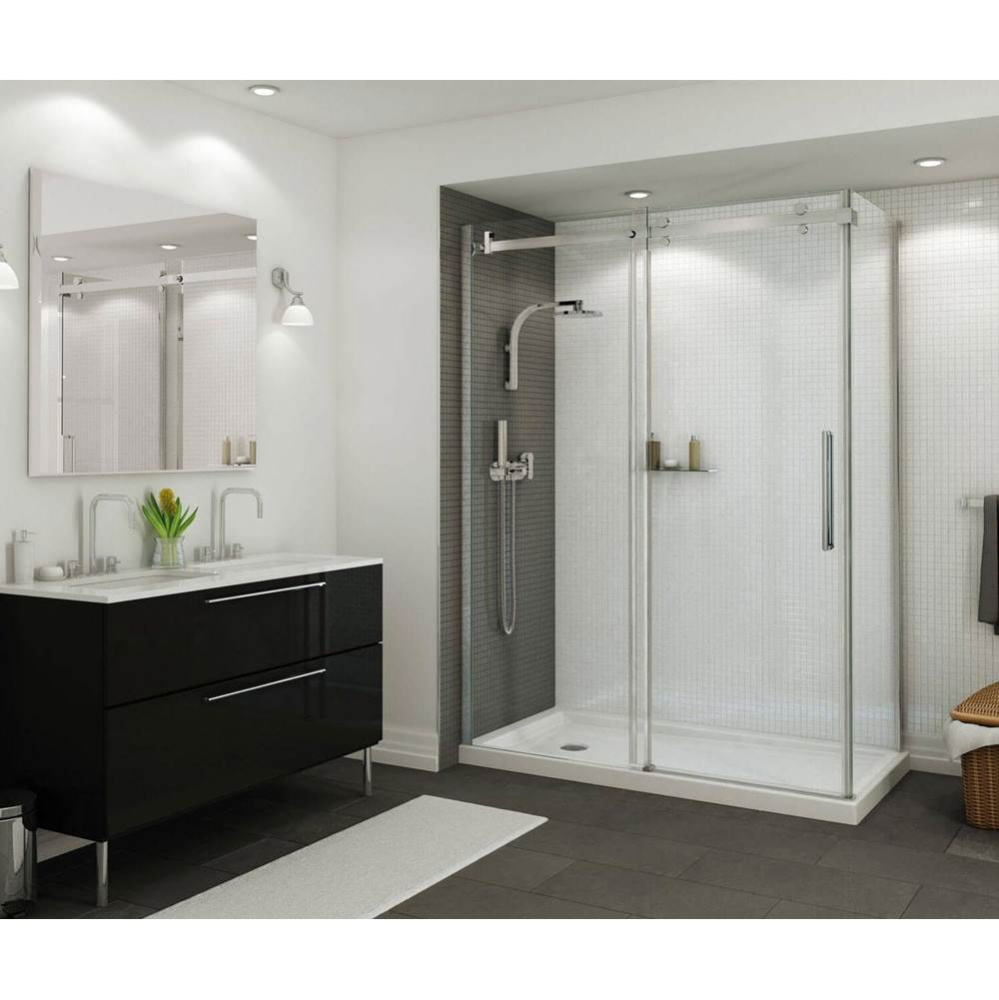 B3Round 6036 Acrylic Corner Left Shower Base in White with Anti-slip Bottom with Left-Hand Drain (410006-542-001-001)