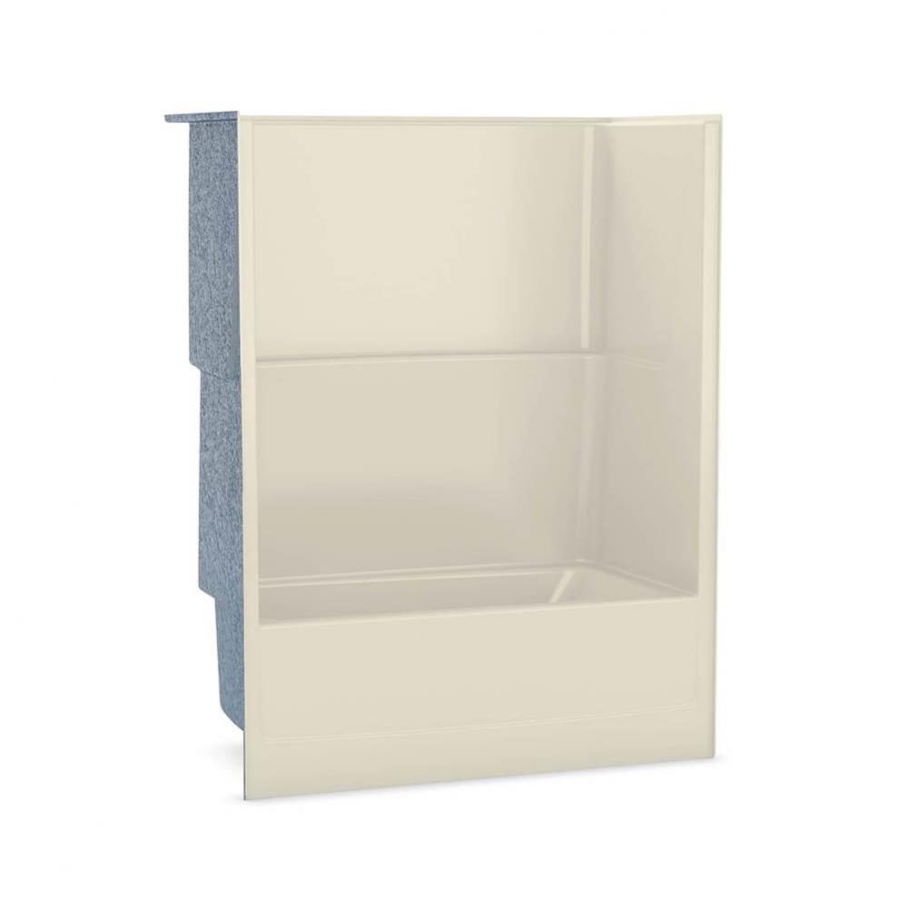 1-piece tub shower without roof cap Integrated wide shelves 20 in. apron, 13 3/8 in. deep bathing well Above-the-Floor Rough (AFR) Optional wall reinforcement and grab bars Textured bottom