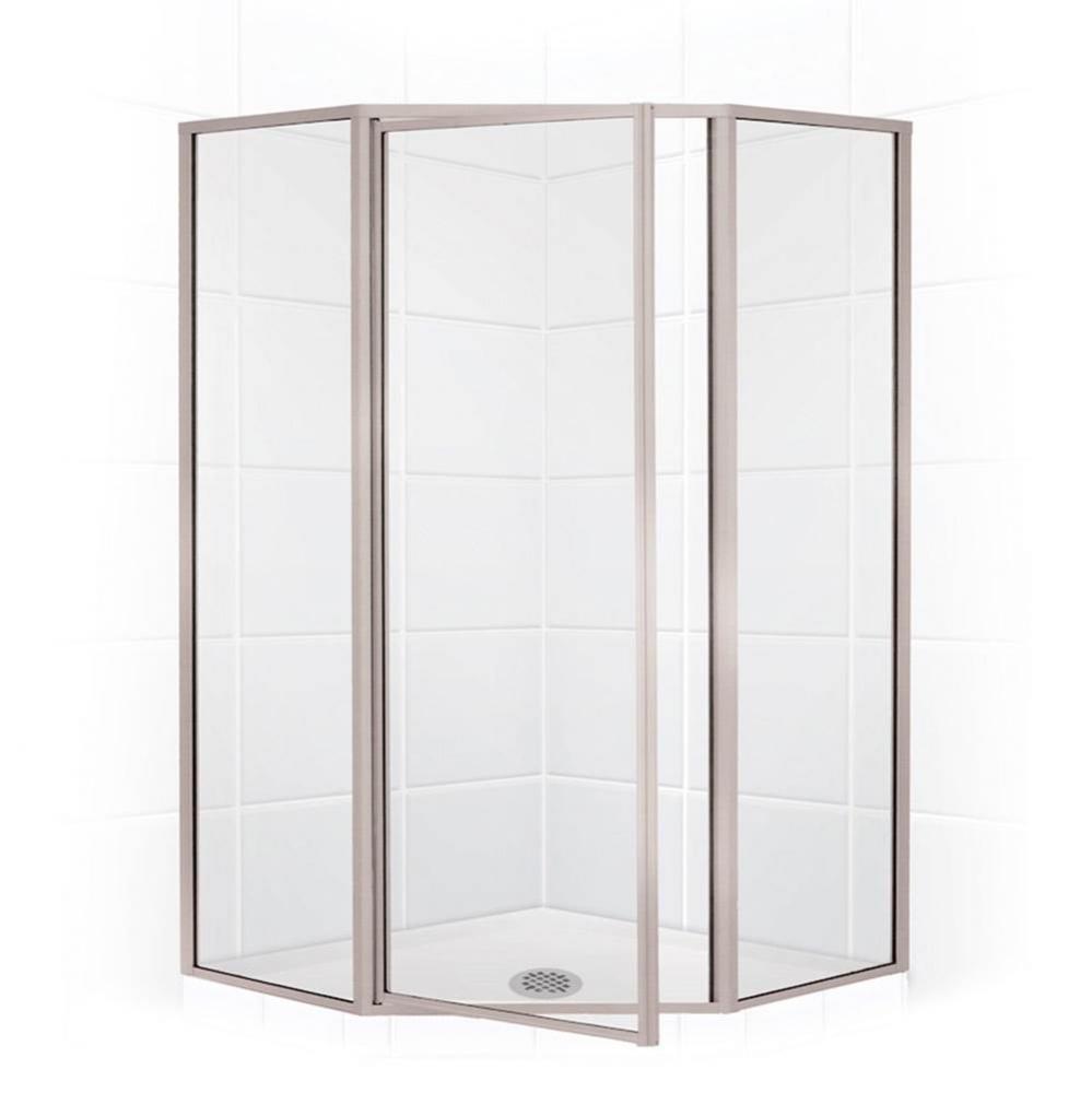 Furnish and install as shown on plans, a Stylemate neo-angle enclosure as manufactured by E.L. Mustee and Sons Inc. Model 36.762 with a bright brushed nickel finish. Shall be neo-angle style with aluminum frame. Tempered safety glass panels shall be clear.
