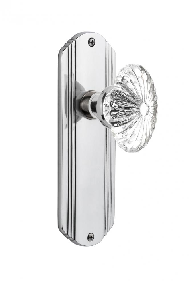 Nostalgic Warehouse Deco Plate Privacy Oval Fluted Crystal Glass Door Knob in Bright Chrome (705809) by Nostalgic Warehouse