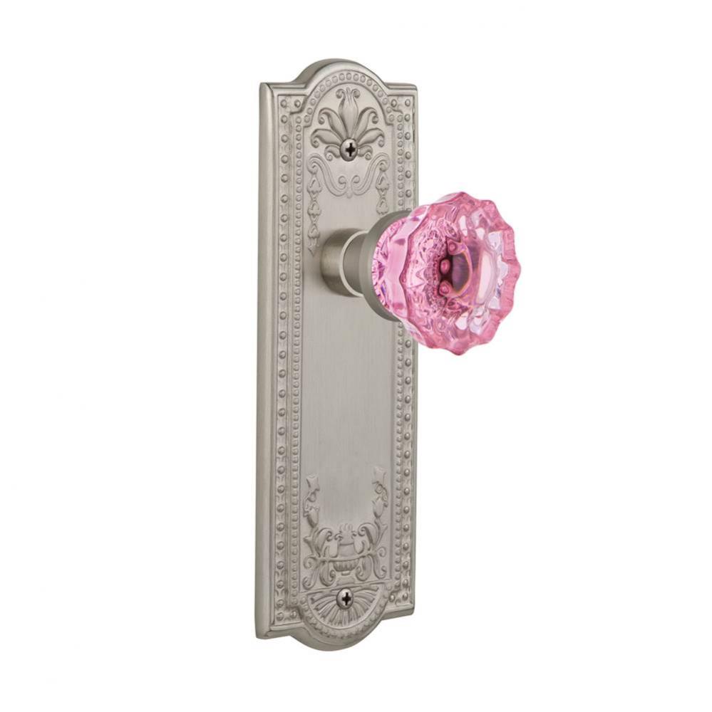 Nostalgic Warehouse Meadows Plate Passage Crystal Pink Glass Door Knob in Satin Nickel (720677) by Nostalgic Warehouse