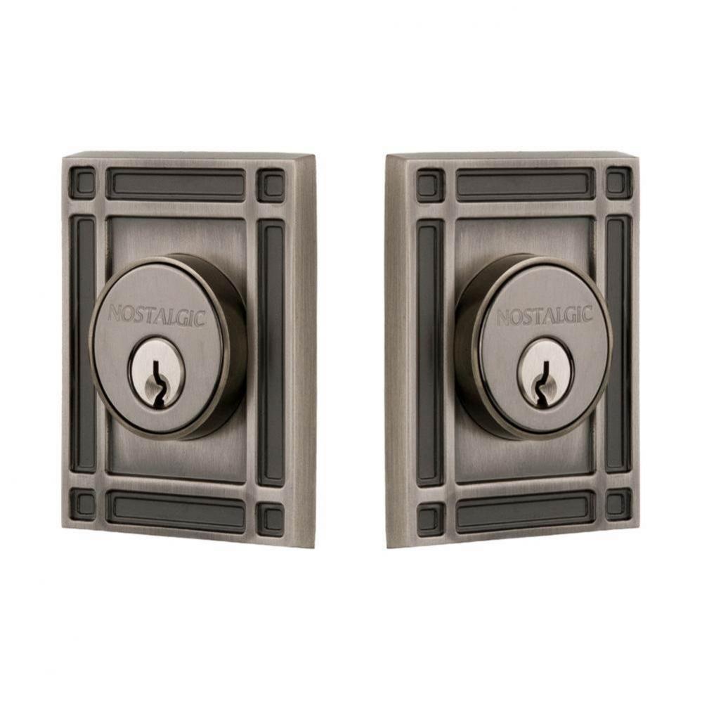 Nostalgic Warehouse Mission Plate Double Cylinder Deadbolt in Antique Pewter (719179)