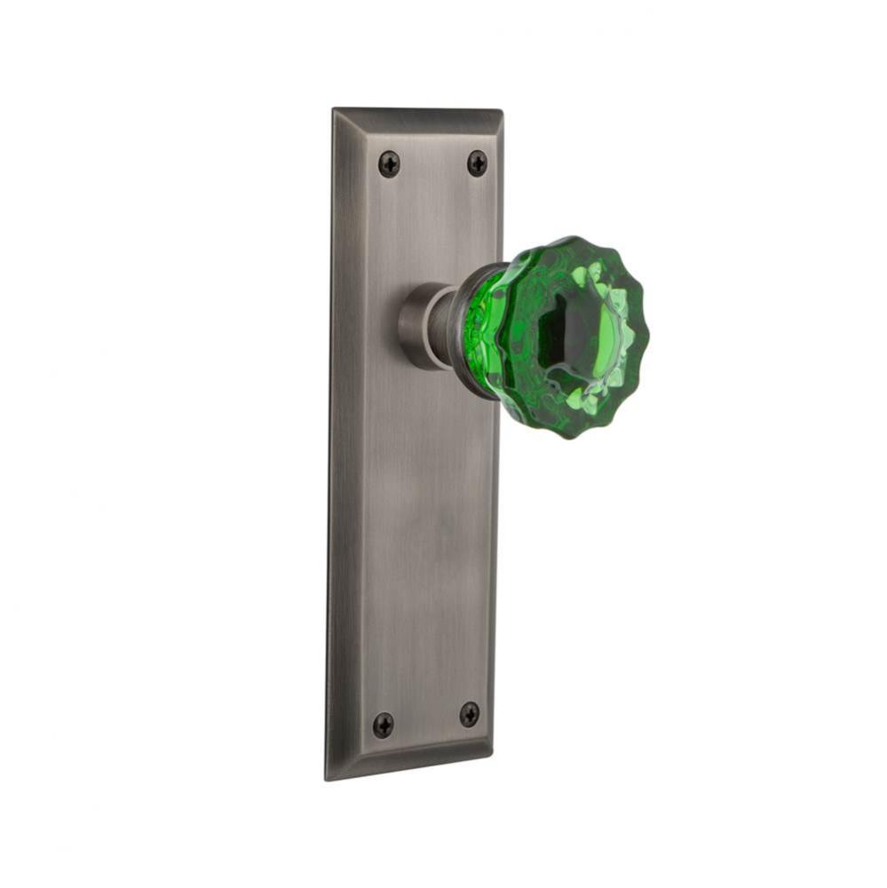 Nostalgic Warehouse New York Plate Privacy Crystal Emerald Glass Door Knob in Antique Pewter (724737) by Nostalgic Warehouse