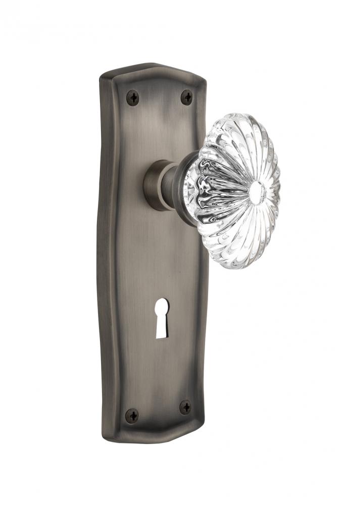 Nostalgic Warehouse Prairie Plate with Keyhole Privacy Oval Fluted Crystal Glass Door Knob in Anti