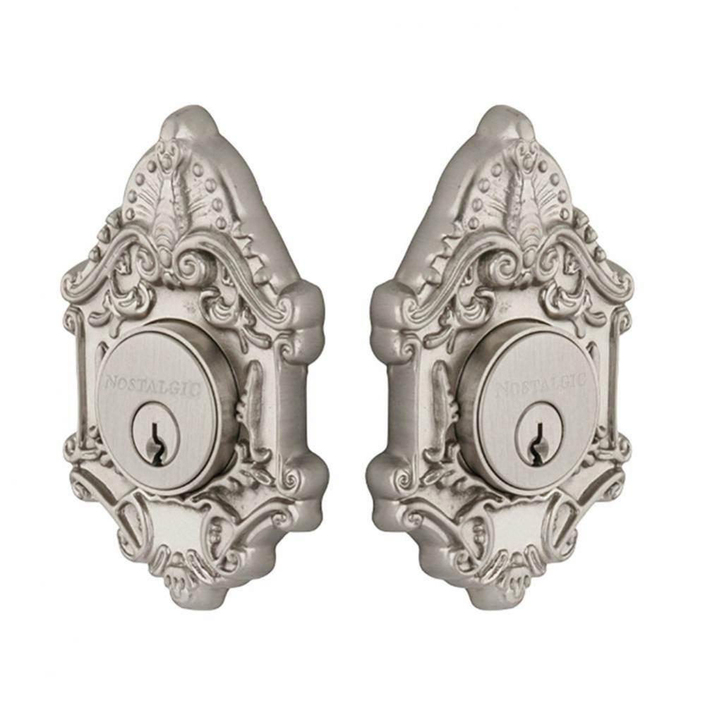 Nostalgic Warehouse Victorian Plate Double Cylinder Deadbolt in Satin Nickel (719241)