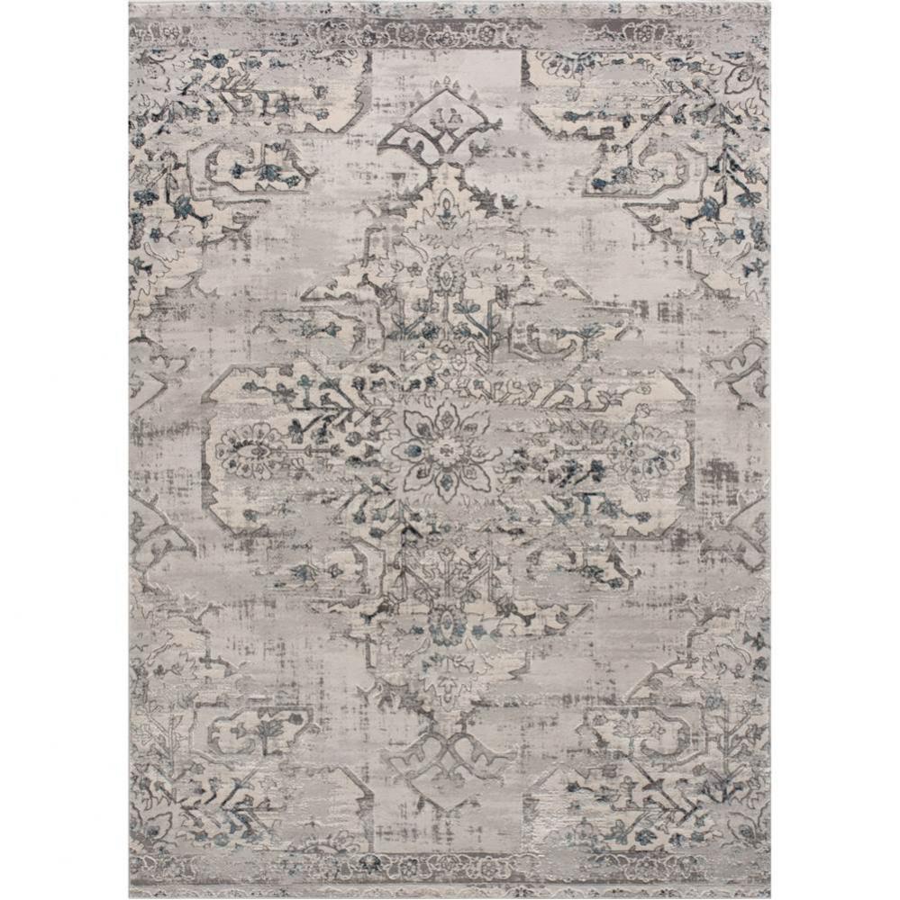 This rug fills the classic living space with traditional artistry from every angle. Featuring gray and blue details, it fills the interior with a cool yet classic quality. Constructed with a power loom, it brings a soft surface to everyday activity.