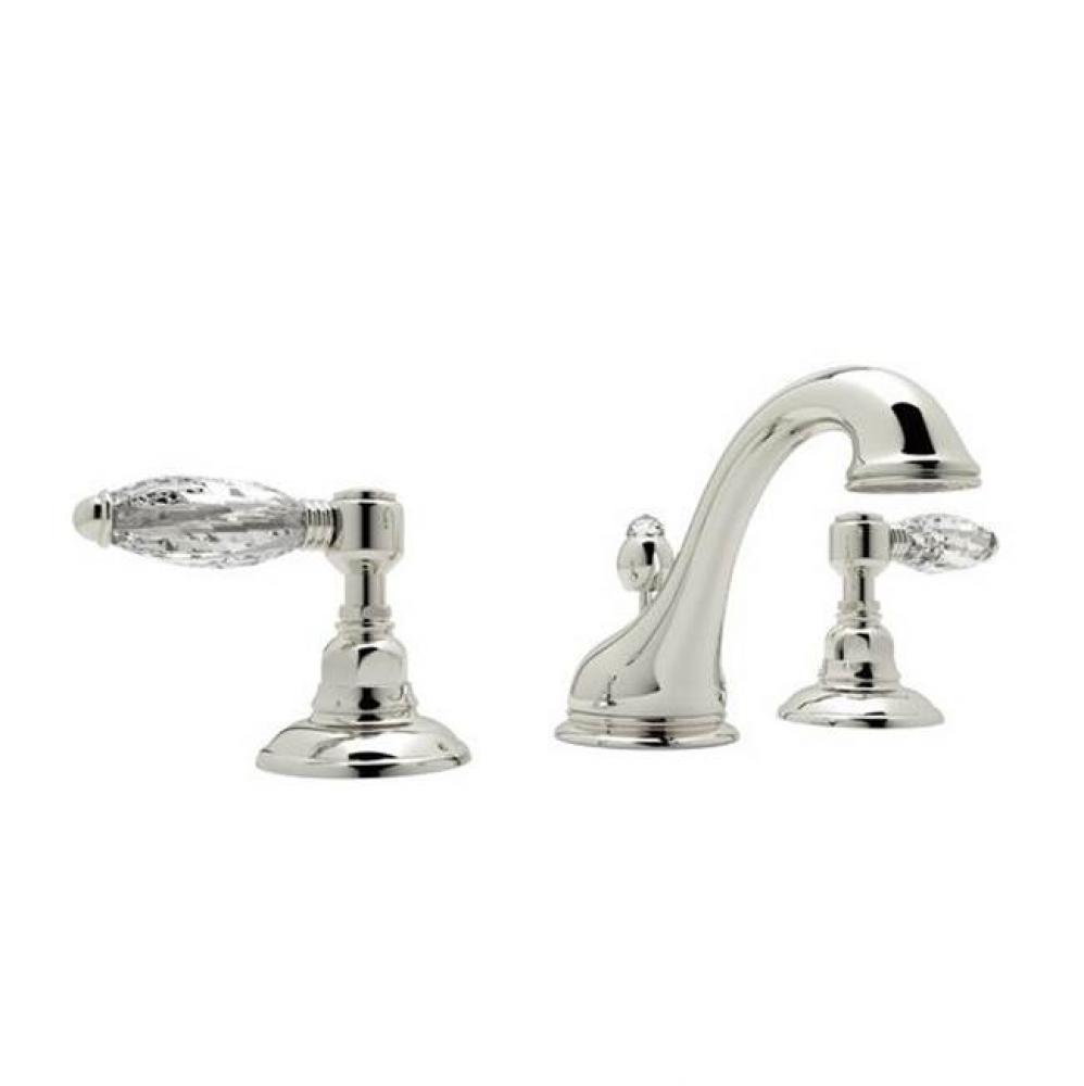 Rohl Italian Bath Viaggio Widespread Lavatory Faucet In Polished Nickel With Crystal Levers Pop-Up And ''C'' Spout