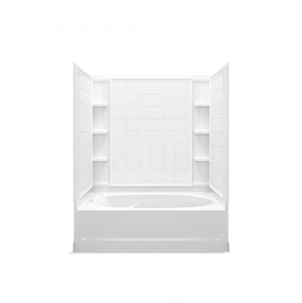 With the realistic look of square tile, the Ensemble bath/shower adds character to any bathroom. Made of solidVikrell(R)material, it delivers strength, durability and lasting beauty. The durable high-gloss finish provides a smooth, shiny surface thats