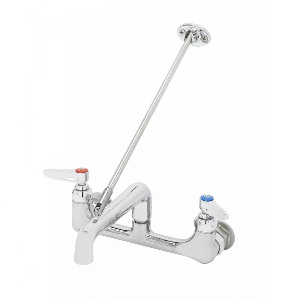 Service Sink Faucet, Wall Mount, 8'' Centers, Wall Brace, Plain-End Outlet, Polished Finish