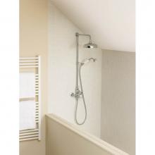 Thermostatic wall mounted shower mixer with handheld attachment. Polished