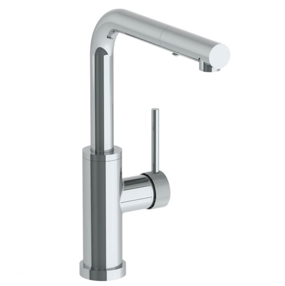 Deck Mounted 1 Hole Square Top Kitchen Faucet with Pull Out Spray - Low Spout (22-7.3P3-TIC-PC)