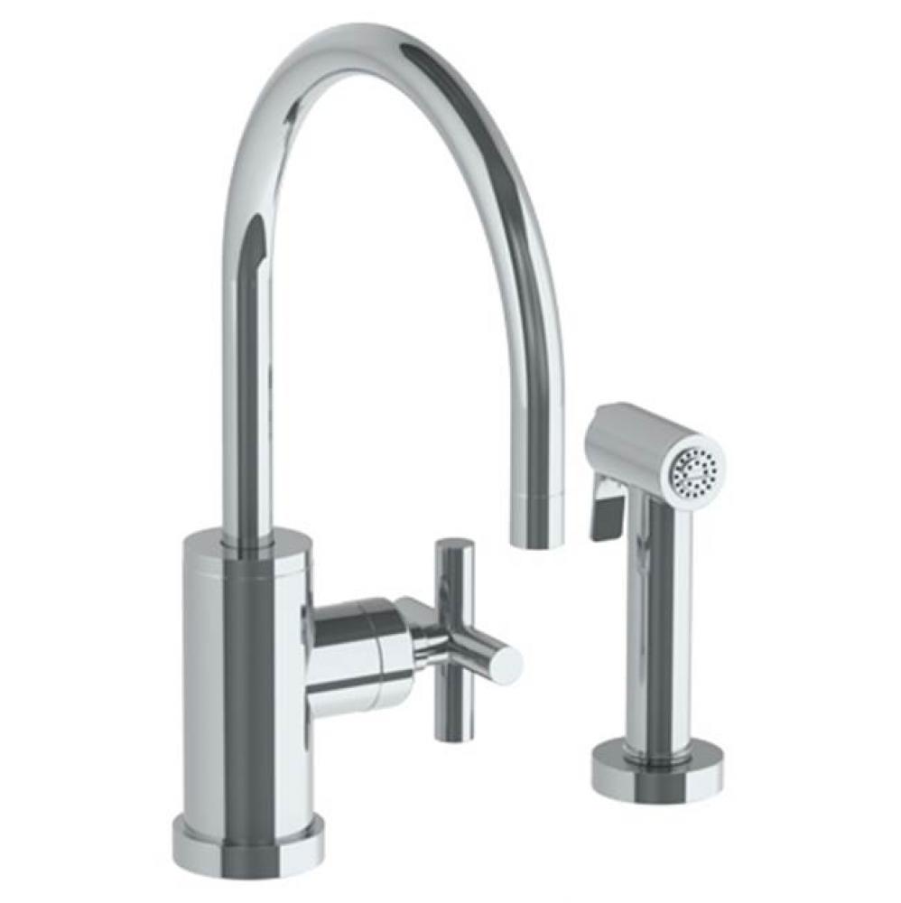 Deck Mounted 2 Hole Gooseneck Kitchen Set - Includes Side Spray (23-7.4G-L9-PC)