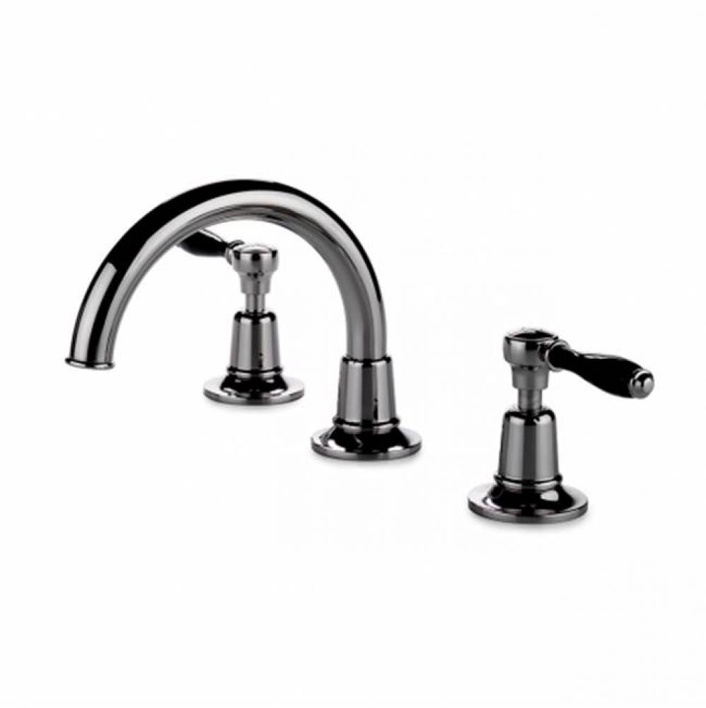 Easton Classic Gooseneck Three Hole Deck Mounted Lavatory Faucet with Black Porcelain Lever (07-07130-54367)