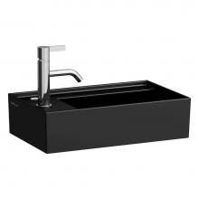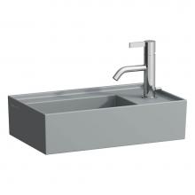 Small washbasin, tap bank left, with concealed outlet, w/o overflow, wall mounted