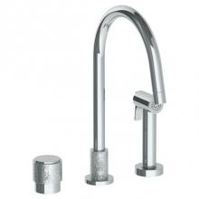 Deck Mounted 2 Hole Gooseneck Prep Faucet with Pull Down Spray