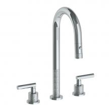 Deck Mounted 1 Hole Gooseneck Prep Faucet with Pull Down Spray