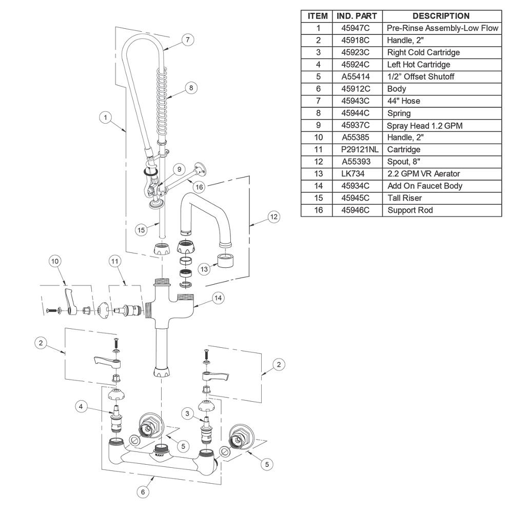 8'' Centerset Wall Mount Faucet 44'' Flexible Hose with 1.2 GPM Spray Head + 8 (LK943AF08LC)