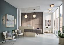 Lowell is a transitional design with clean lines and a subtle mid-century modern overtone. Robust cast L-bracket details combine with a twist lock system to maintain a sleek appearance that fits any décor.