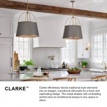 An effortless blend of classic style elements, Clarke’s transitional design is fresh and elegant. Its captivating metal or linen shade and contrasting frame lend architectural beauty to any space with a selection of sophisticated finishes to complement any décor aesthetic.