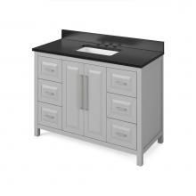 Sleek lines and raised panels come together to create a unique design for the sophisticated Cade vanity collection. Contemporary Stanton pulls adorn this vanity collection, adding elegance and class. Cade''''s design styles merge to create a perfectly transitional vanity collection. A hardwood dovetail rollout drawer with full-extension soft-close undermount slides is situated underneath the adjustable shelf in the cabinet. White, Black, and Grey vanities are adorned with Polished Chrome pulls. The complete Cade collection is available in a full range of sizes: 18'''', 24'''', 30'''', 36'''', 48'''', and 60'''' double. Each Cade vanity can accept any top material with an oval or rectangle bowl cutout. Top and bowl sold separately.