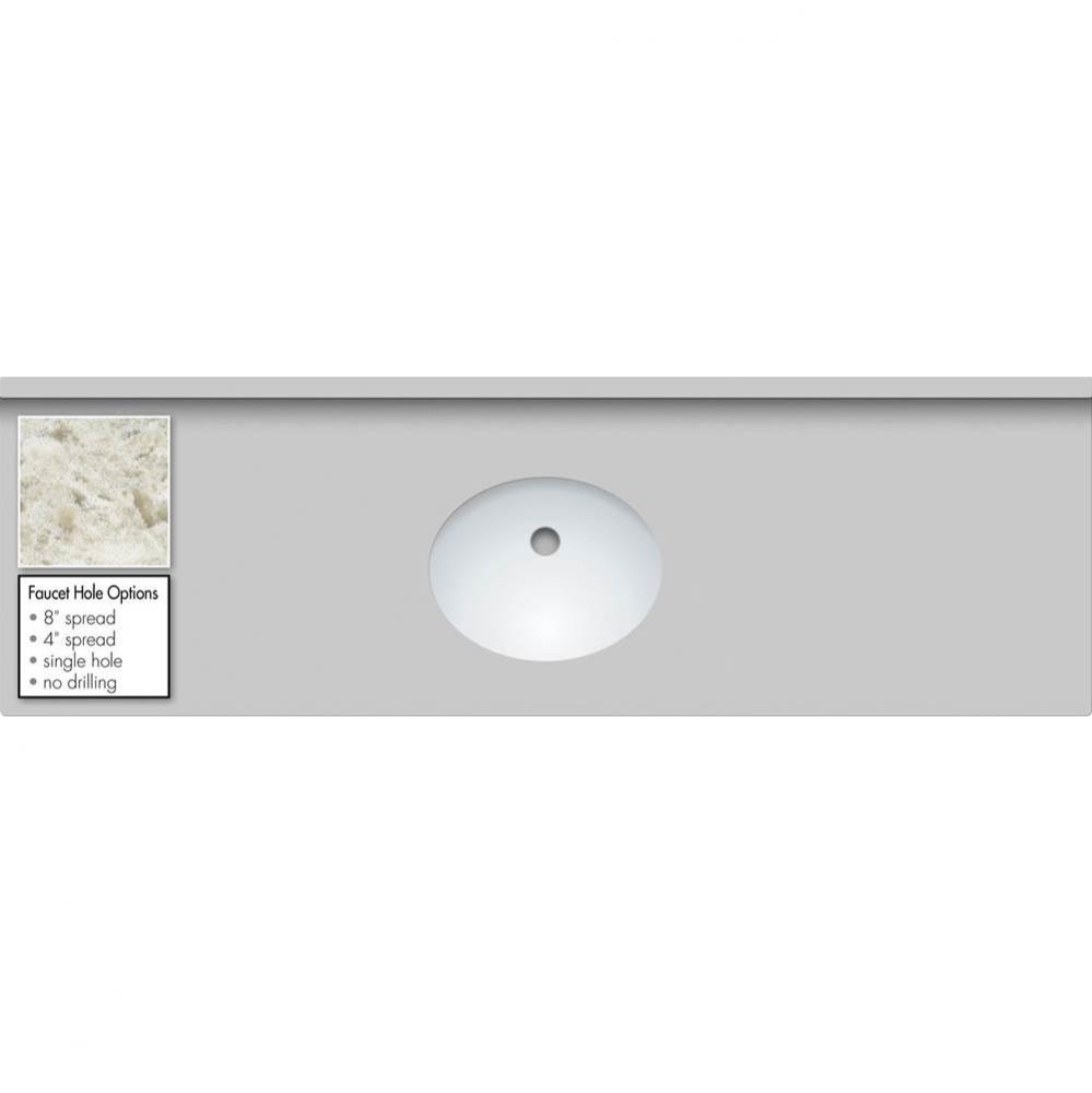 Sangda Falls Quartz Vanity Top with 1 White Oval basin; Single hole faucet drilling